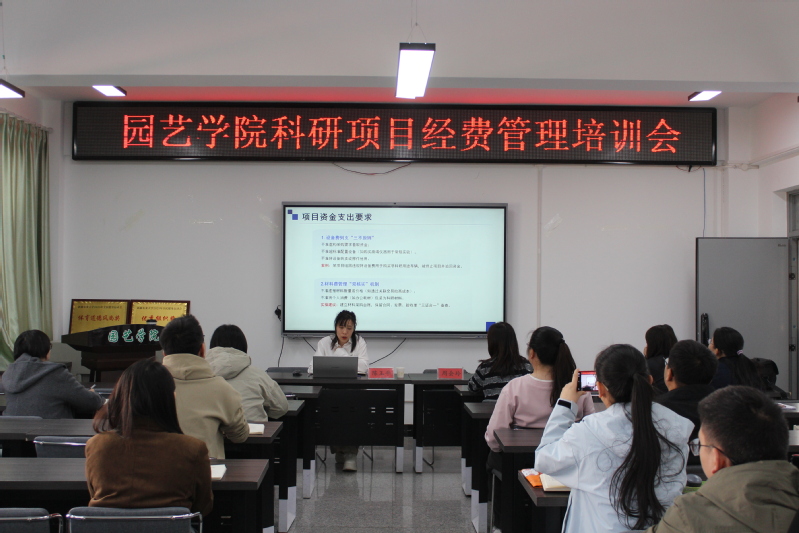 3月27日下午,财务处深入园艺学院开展科研经费管理专项培训。会议由园艺学院副院长周会玲主持,财务处陈玉平同志授课,学院教师积极参与。