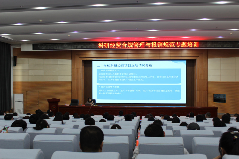 为进一步提升学校科研人员经费管理与财务报销实操能力,4月7日下午,财务处举办科研经费合规管理与报销规范专题培训在八一会堂问学厅顺利举行。各学院、机关教辅部门教师、科研经费报账人员及财务相关人员等140余人参加培训,财务处处长尚玲主持培训并作专题讲解。